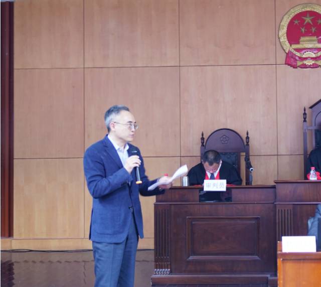 下午3點書記員宣布法庭紀律。當“審判人員”身著莊嚴的法袍步入法庭時,全場起立,對法律的崇敬感由然而生。審判長敲響法槌,庭審正式開庭。法官居中駕馭庭審,把控節(jié)奏,完整展現一審庭審程序。法庭調查階段,原被告雙方先后宣讀了起訴狀、答辯狀,闡明訴訟請求和答辯理由。原告代理人李江濤律師據理力爭,有理有節(jié),被告代理人劉凌律師妙語生花,針鋒相對,輪番向證人、鑒定人發(fā)問,贏得了點評嘉賓和觀摩人員的青睞。庭審逐步轉入最激動人心的辯論階段,原被告當事人之間的相互發(fā)問落地有聲,雙方代理人也是據理力爭、毫不相讓,將法庭的氣氛推到了高潮。