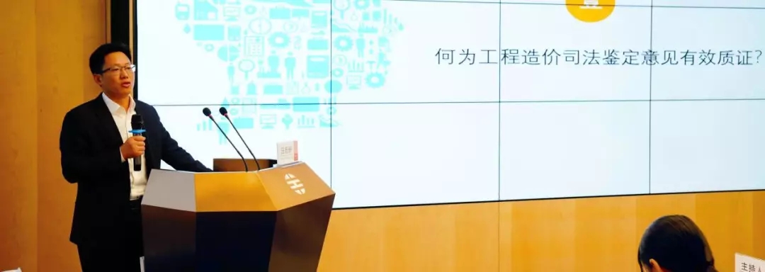 汪后新律師作“如何對(duì)工程造價(jià)司法鑒定意見進(jìn)行有效的質(zhì)證 --兼談《建設(shè)工程造價(jià)鑒定規(guī)范》”的專題報(bào)告