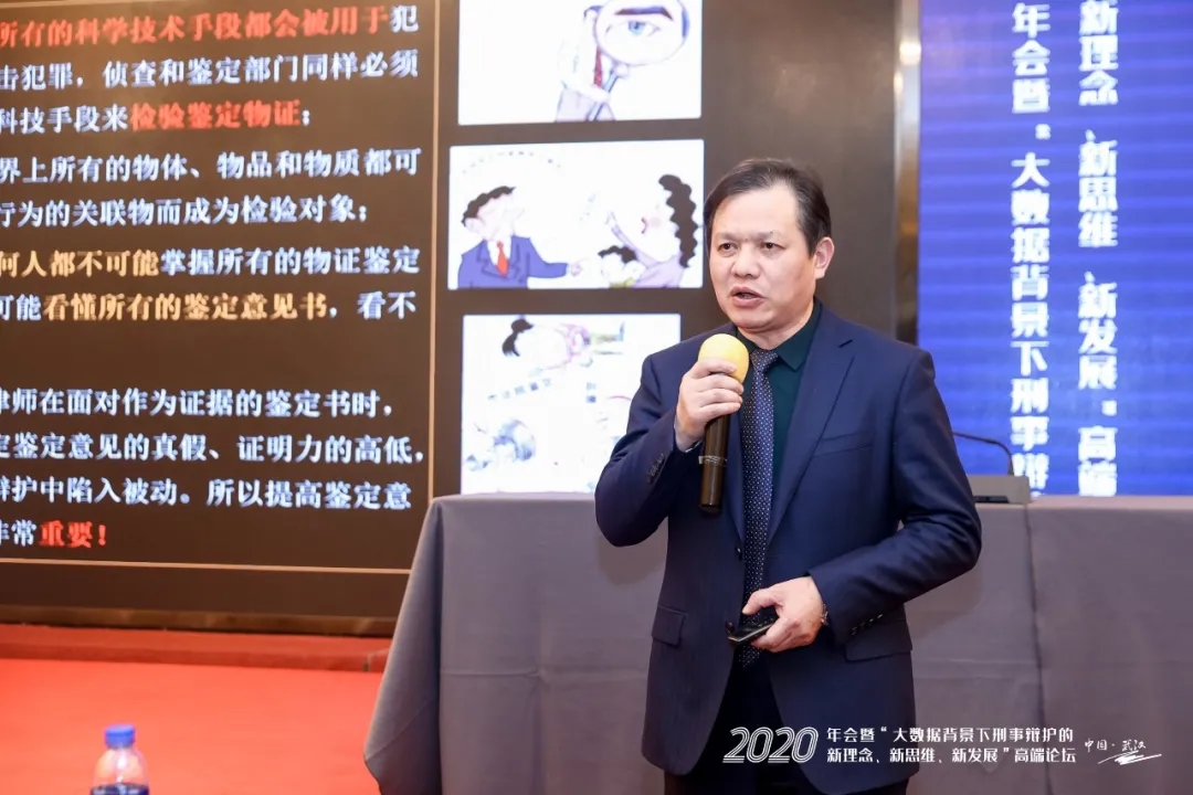 中南財經(jīng)政法大學(xué)刑事司法學(xué)院院長、中南財經(jīng)政法大學(xué)刑事辯護(hù)研究院院長、教授、博士生導(dǎo)師胡向陽發(fā)表了《以證據(jù)學(xué)為視角談司法鑒定意見的質(zhì)證》的主題演講。他結(jié)合自己多年的教學(xué)與實(shí)務(wù)經(jīng)驗(yàn),從“鑒定意見形式內(nèi)容的規(guī)范性”、“鑒定檢材和樣本的客觀性、關(guān)聯(lián)性”、“鑒定方法的科學(xué)性”、“鑒定依據(jù)和標(biāo)準(zhǔn)的科學(xué)性”等十大方面,講解了司法鑒定意見的質(zhì)證要點(diǎn)。他指出,司法鑒定意見的科學(xué)性將會隨著社會、科技和法律的進(jìn)步不斷發(fā)展,辯護(hù)律師應(yīng)當(dāng)提升司法鑒定意見的質(zhì)證能力,才能在刑事訴訟中占據(jù)更加主動的地位。