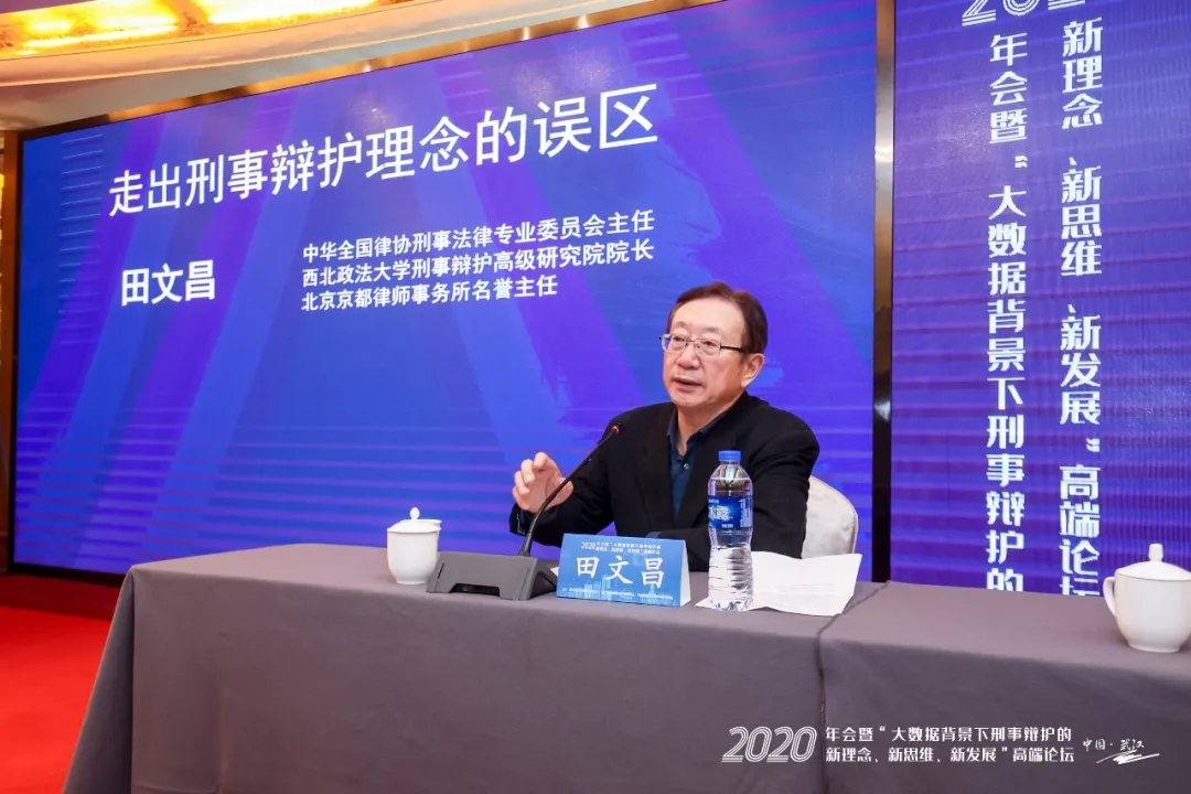 中華全國律師協(xié)會刑事法律專業(yè)委員會主任、西北政法大學(xué)刑事辯護(hù)高級研究院院長、北京大學(xué)、清華大學(xué)等院校兼職教授、北京市京都律師事務(wù)所名譽(yù)主任田文昌發(fā)表了《走出刑事訴訟理念的誤區(qū)》的主題演講。他指出,法律人走出刑事訴訟的誤區(qū)最重要的是不斷更新滯后的法律理念,并結(jié)合近年來倍受關(guān)注的刑事案件闡述了“實(shí)事求是與無罪推定”、“不枉不縱與疑罪從無”、“法律真實(shí)與客觀真實(shí)”、“打擊犯罪與保障人權(quán)”之間的邏輯沖突,認(rèn)為只有厘清上述邏輯關(guān)系并正確認(rèn)識“律師制度的價值追求”,才能形成真正的法治思維。