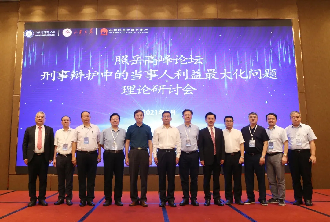 2021年6月27日,首屆“照岳高峰論壇”—“刑事辯護中的當事人利益最大化問題”理論研討會在山東省濟南市成功舉行。此次論壇由山東省律師協(xié)會、山東大學(xué)刑事司法與刑事政策研究中心主辦,山東省律協(xié)刑事專業(yè)委員會、刑事訴訟專業(yè)委員會、刑事法律風(fēng)險防范委員會協(xié)辦,山東照岳律師事務(wù)所承辦。