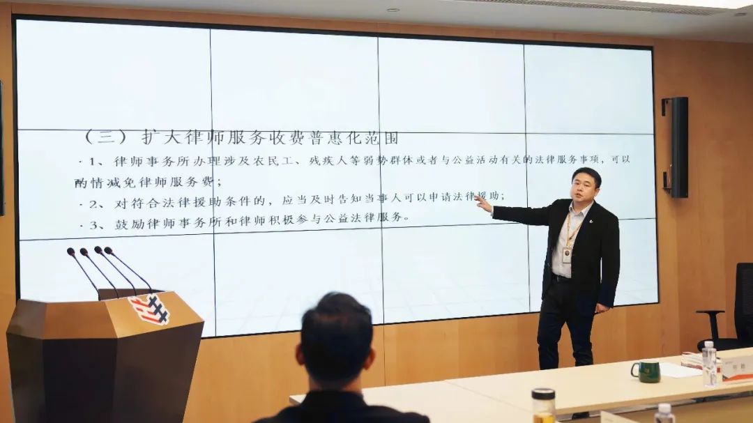 會(huì)議伊始,劉勛主任同與會(huì)人員一起學(xué)習(xí)司法部、國家發(fā)展和改革委員會(huì)、國家市場監(jiān)督管理總局聯(lián)合印發(fā)《關(guān)于進(jìn)一步規(guī)范律師服務(wù)收費(fèi)的意見》的通知(司發(fā)通(2021)87號(hào))文件精神。進(jìn)一步加強(qiáng)律所立案收結(jié)費(fèi)管理,強(qiáng)調(diào)完善律師服務(wù)收費(fèi)政策、嚴(yán)格規(guī)范律師風(fēng)險(xiǎn)代理行為、健全律師事務(wù)所收費(fèi)管理、強(qiáng)化律師服務(wù)收費(fèi)監(jiān)督檢查。劉勛主任表示,全所律師應(yīng)當(dāng)全面、認(rèn)真學(xué)習(xí)文件精神,恪守職業(yè)道德,嚴(yán)格遵守執(zhí)業(yè)規(guī)范。律所也將根據(jù)文件要求對(duì)風(fēng)險(xiǎn)代理合同模版、風(fēng)險(xiǎn)代理收費(fèi)標(biāo)準(zhǔn)、代理流程等進(jìn)行修訂。