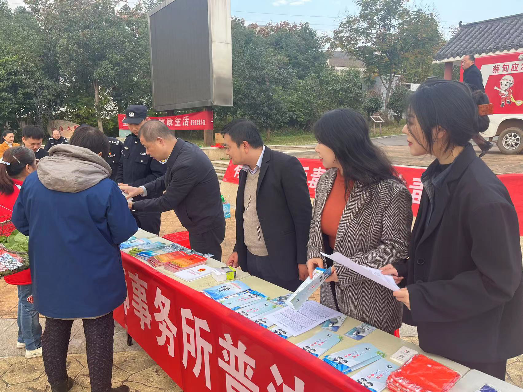 為貫徹落實習(xí)近平總書記關(guān)于加強法治宣傳工作、嚴(yán)肅禁毒及反邪教方面的重要講話精神。2023年11月24日,湖北立豐律師事務(wù)所(以下簡稱“立豐所”)聯(lián)合蔡甸區(qū)索河街道平安辦公室、蔡甸區(qū)索河街道司法所、蔡甸區(qū)索河街派出所、蔡甸區(qū)索河街道索河社區(qū)在蔡甸區(qū)索河街道文化廣場開展“普法下鄉(xiāng)、禁毒反邪教”主題普法宣傳活動,助力鄉(xiāng)村振興。