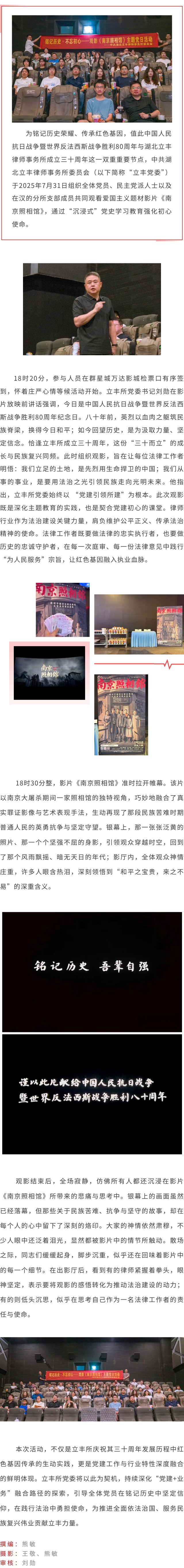 立豐黨委組織“銘記歷史•不忘初心”觀影《南京照相館》主題黨日活動