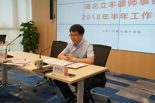 2018 年7月15日9:00時,值湖北立豐律師事務所(以下簡稱“立豐所”)整體喬遷進駐位于武漢市洪山區(qū)歡樂大道特1號東湖國貿(mào)中心A座宏泰大廈18、19樓之際,立豐所在此舉行了2018年半年工作總結(jié)大會。