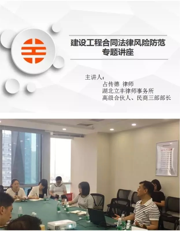 2017年5月19日上午,湖北立豐律師事務(wù)所高級(jí)合伙人、民商三部部長占傳德律師受中南建筑設(shè)計(jì)院科思達(dá)工程技術(shù)有限公司、湖北華隆工程建設(shè)監(jiān)理有限公司邀請(qǐng),為公司各部門負(fù)責(zé)人及相關(guān)部門工作人員,進(jìn)行了《建筑工程企業(yè)法律風(fēng)險(xiǎn)防范》的專題講座。