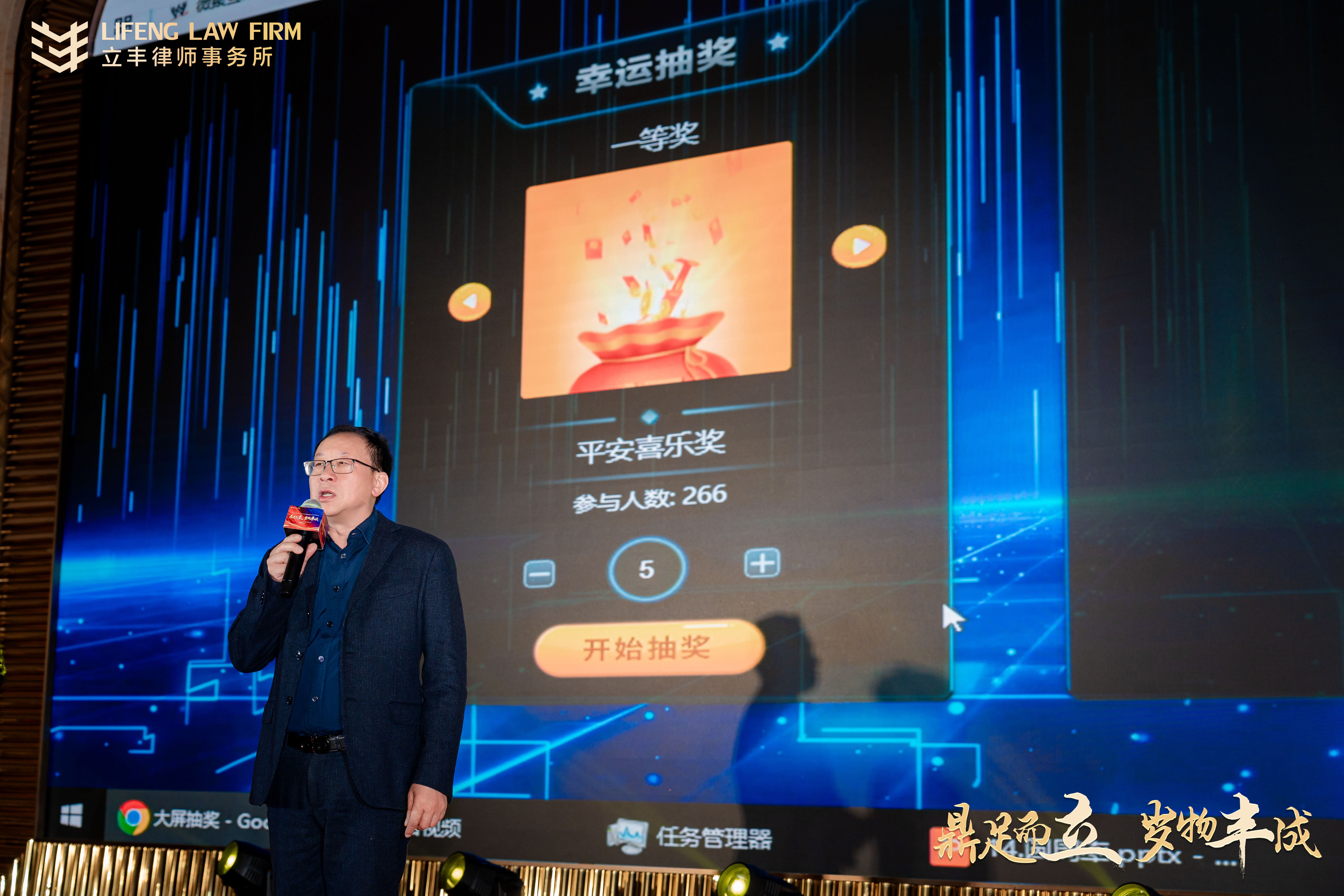 除了精彩的節(jié)目表演,抽獎(jiǎng)和游戲環(huán)節(jié)同樣激動(dòng)人心。本次設(shè)置獎(jiǎng)項(xiàng)居多,高到80余人中獎(jiǎng),直接以現(xiàn)金紅包的方式發(fā)獎(jiǎng),在揭曉最終大獎(jiǎng)的時(shí)刻,作為開獎(jiǎng)嘉賓的首席合伙人汪少鵬,滿懷喜悅地表示:今天是立豐律所2024年度總結(jié)盛會(huì),同時(shí)也是慶祝立豐律所成立三十周年的重大時(shí)刻。他將在2025年底的慶祝三十周年大會(huì)上發(fā)表更多感言。此刻,最想表達(dá)的是對所有立豐同仁的深深感激之情,正是大家的共同堅(jiān)守與不懈努力,才鑄就了立豐今日的輝煌成就。值此良機(jī),向全體同仁致以誠摯的話語:風(fēng)雨同舟三十年,砥礪前行一百年。若你忠誠于立豐,立豐將成為你展示才華的絢麗舞臺(tái);若你熱愛立豐,立豐便是你溫馨的家園。