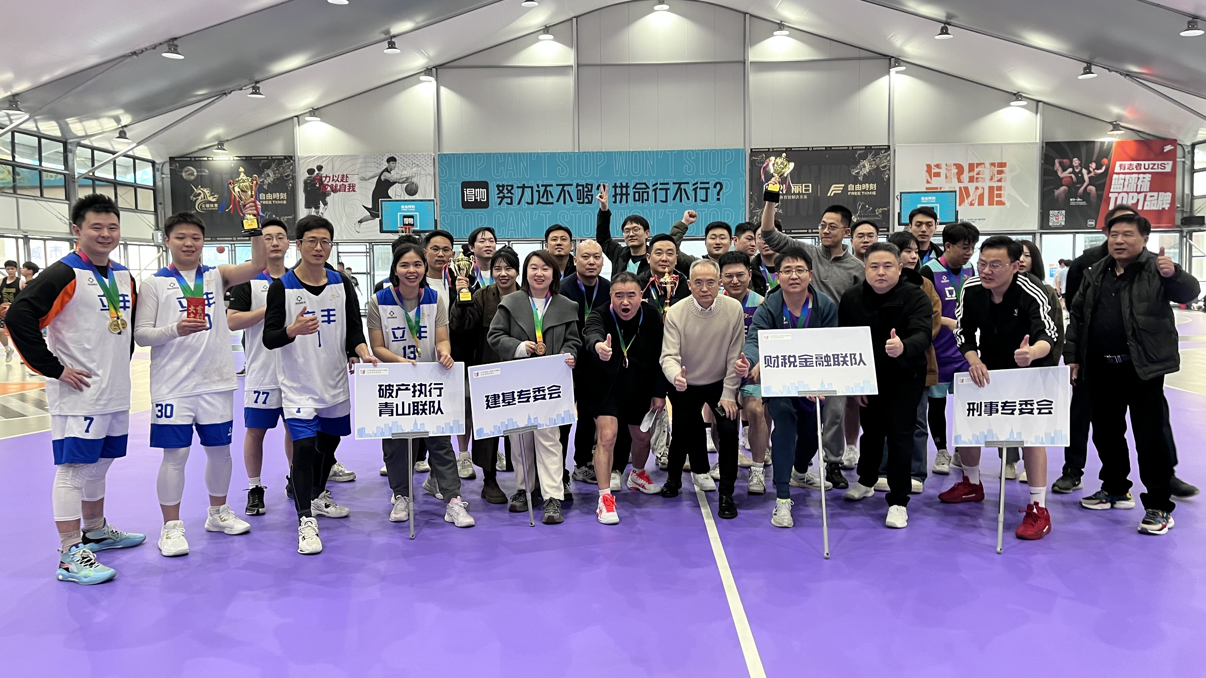 經(jīng)過(guò)兩天緊張激烈的角逐,最終成績(jī)?yōu)椋汗谲娖飘a(chǎn)執(zhí)行青山聯(lián)隊(duì),亞軍財(cái)稅金融聯(lián)隊(duì)、季軍建基專委會(huì)隊(duì)。最佳組織獎(jiǎng)由刑事專委會(huì)獲得,最佳啦啦隊(duì)獎(jiǎng)由建基專委會(huì)獲得。